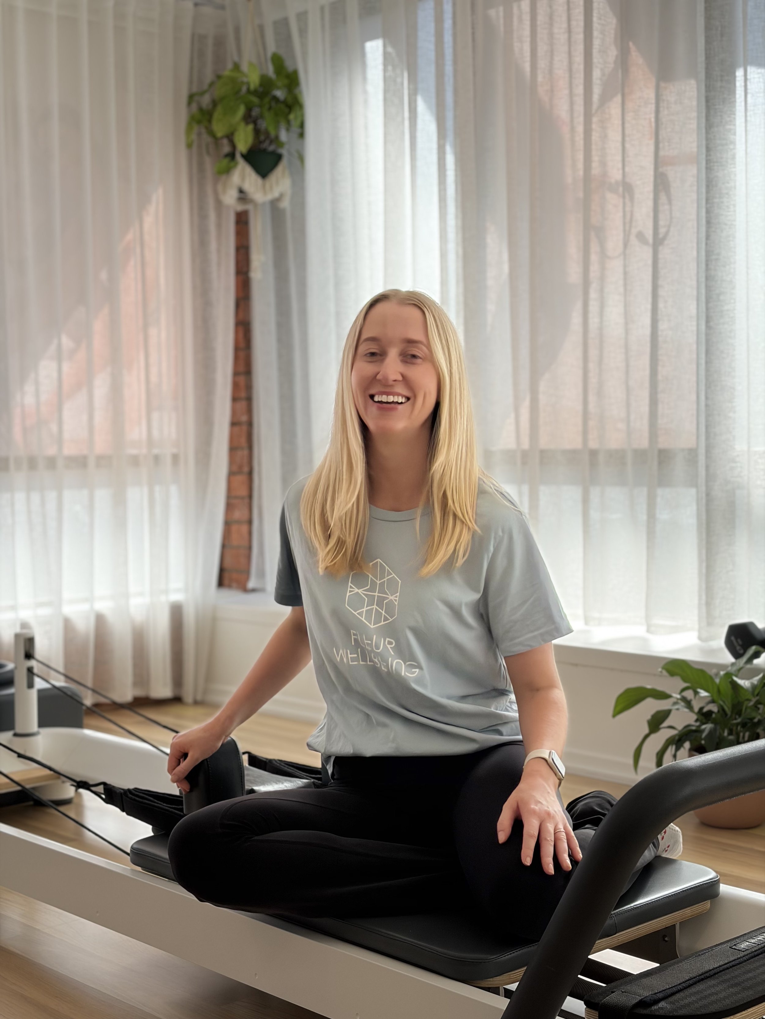 After the birth of her second child, Amie was determined to find a safe, supportive environment to rebuild her strength and fitness. She found just that at Fleur Wellbeing, where she started as a client and quickly became hooked on Pilates.